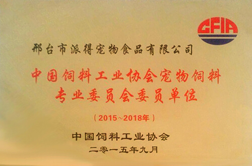 被授予“中國飼料工業協會寵物飼料專業委員會委員單位”稱號
